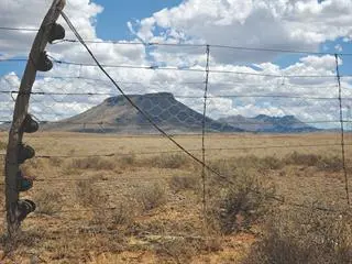 Distin’s first fence, now a national monument, is still standing taught and strong, tethered to the original sneezewood fencing poles at the foot of the table-shaped mountain.