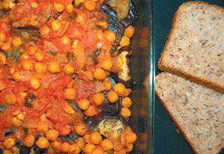 Chickpea, brinjal and tomato bake