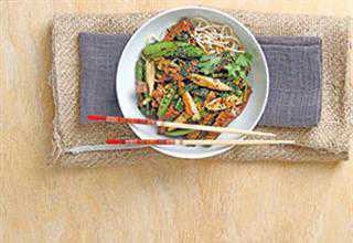 Stir-fried rump with oyster sauce, mirin & bok choy