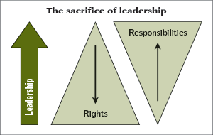Newly appointed managers often foolishly believe the higher one rises in the organisational hierarchy, the more freedom one has to break the rules. It’s exactly the opposite. Leadership requires sacrifice. You must give up as you go up. As you climb the leadership ladder, so your rights decrease and your responsibilities increase (see diagram). Effective leaders walk the talk, set the right example, serve as a role model, and perform actions that speak louder than words.